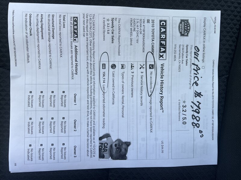 2010 Toyota Camry SE for sale in Sacramento CA