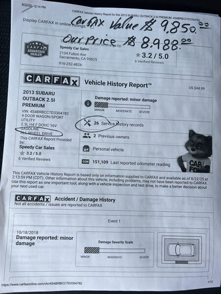 2013 Subaru Outback 2.5i Premium for sale in Sacramento CA
