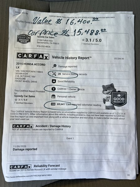 2015 Honda Accord LX for sale in Sacramento CA