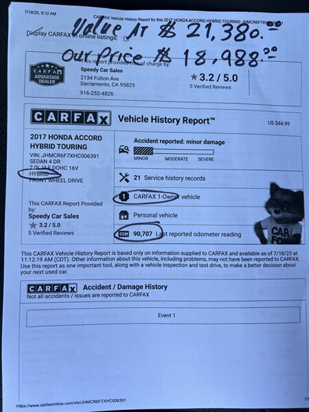 2017 Honda Accord Hybrid Touring for sale in Sacramento CA