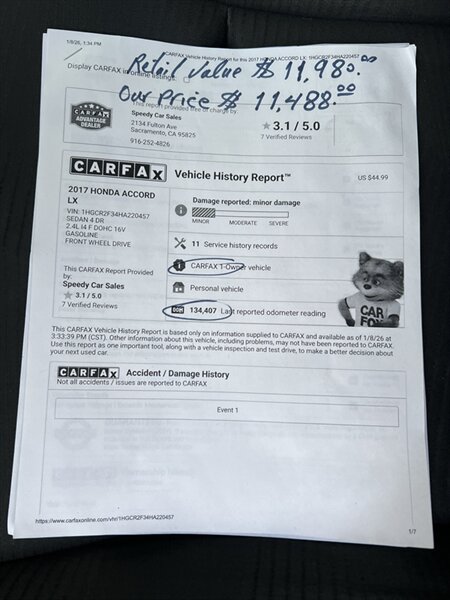 2017 Honda Accord LX for sale in Sacramento CA