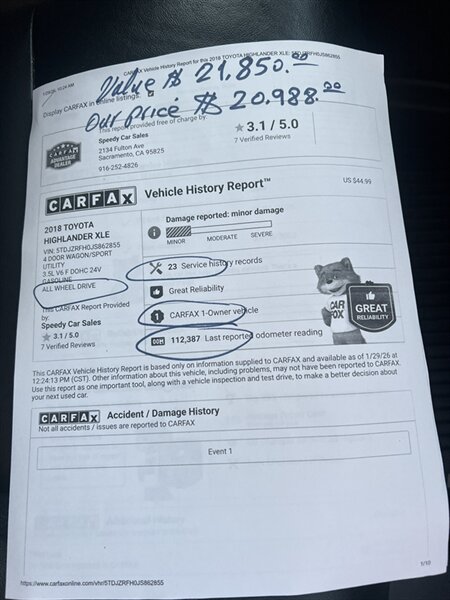 2018 Toyota Highlander XLE for sale in Sacramento CA